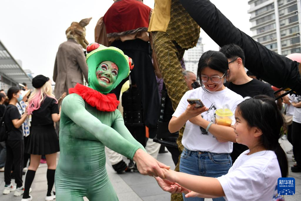 5月7日,在长沙国金中心,演员在演出结束后和观众互动。