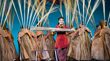 5月18日,家长带着孩子在福建省厦门市博物馆参观展出的漆线雕作品。