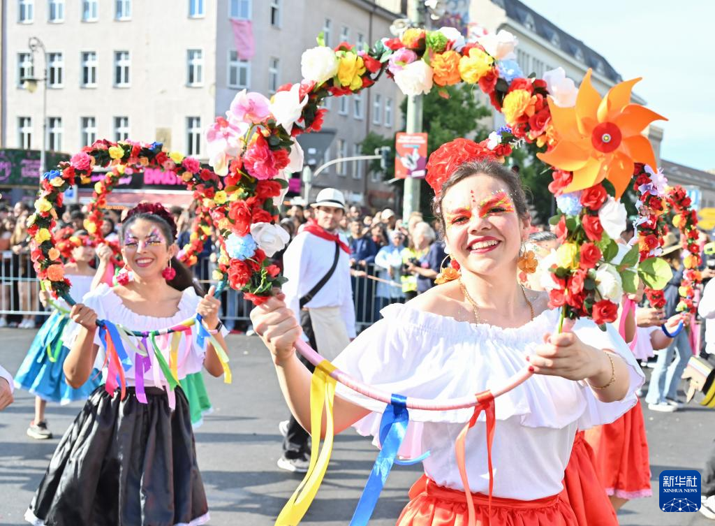 5月19日,来自哥伦比亚的演员参加柏林文化狂欢节大游行。