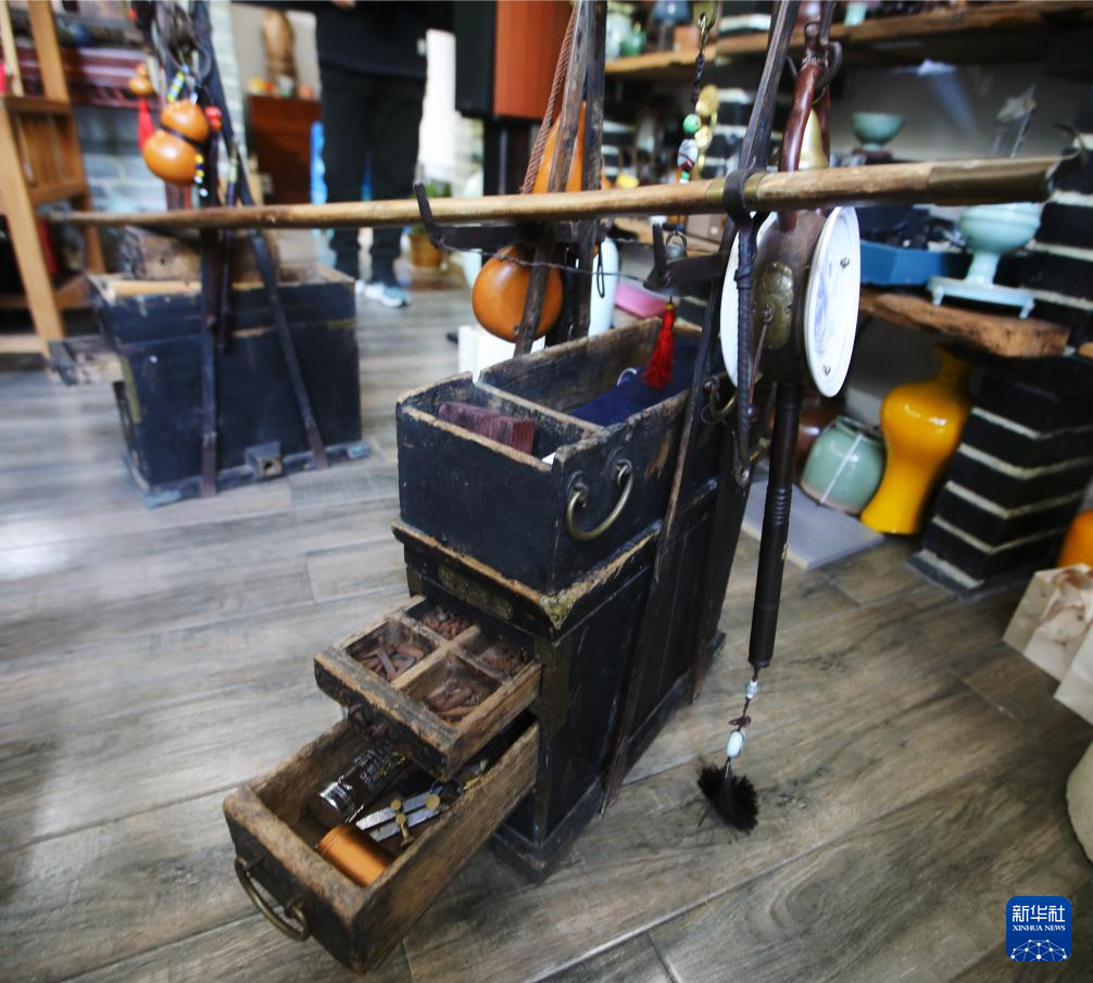 杨涛太爷爷留下的锔匠挑子(5月8日摄)。