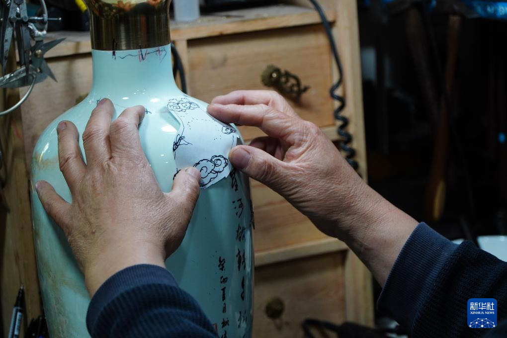 杨涛在工作室用锔瓷技艺修复破损的瓷器(5月8日摄)。
