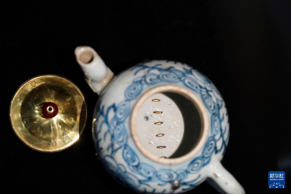 杨涛用“内锔”技艺修复的茶壶(5月8日摄)。