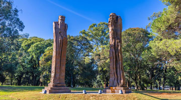 6月1日,一名男孩站在美国加利福尼亚州阿拉米达县的一处沙雕作品前。
