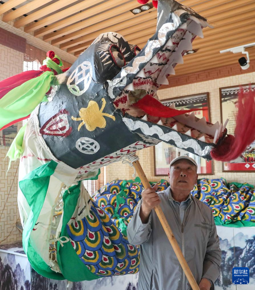 6月4日,张仲发的侄子张新吉(前)在位于沈阳市沈北新区虎石台街道的非遗工作室中学习舞龙头。