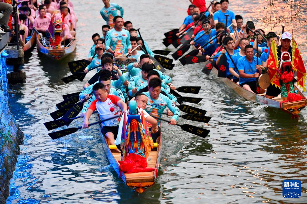 6月9日,福建省福州市长乐区三溪村夜赛龙舟民俗活动如约而至。随着夜幕降临,三溪村民及远道而来的龙舟爱好者们组成的龙舟队驭舟飞驰,挥桨竞渡,南溪两岸及石桥上人潮如涌,热闹非凡。