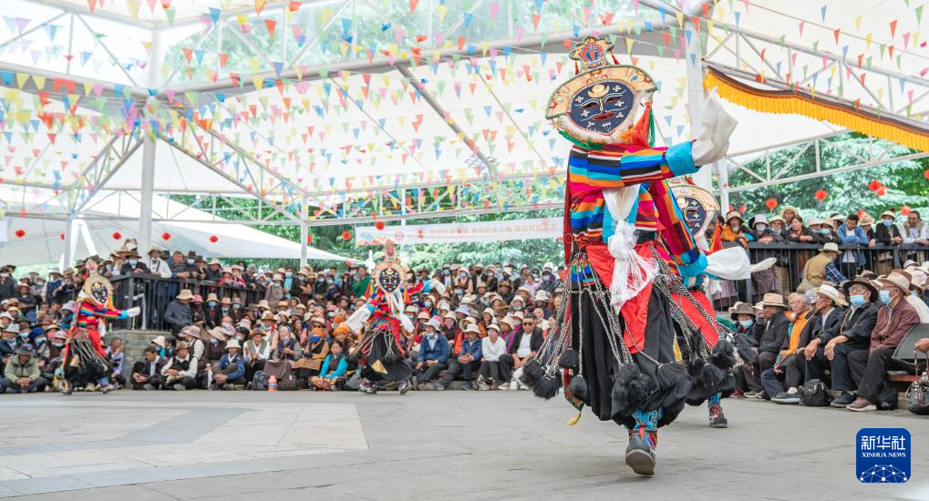6月11日,藏戏艺人在拉萨市宗角禄康公园表演。