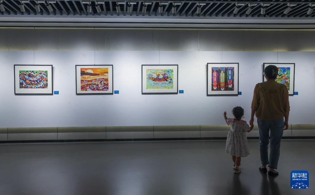 6月12日,在位于嘉兴市艺术文化中心的秀洲农民画艺术馆,参观者观看中国农民画收藏作品展。