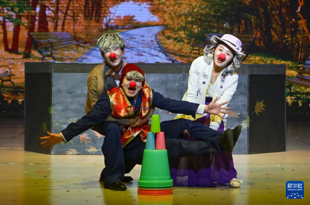 6月18日,在第十二届中国杂技金菊奖全国魔术·滑稽比赛开幕式上,济宁杂技团演员表演滑稽《岁月》。