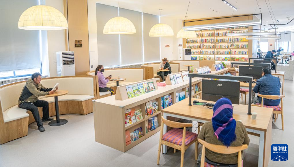 那曲市色尼区群众在“温暖嘉·色尼城市书房”阅读书籍(6月17日摄)。