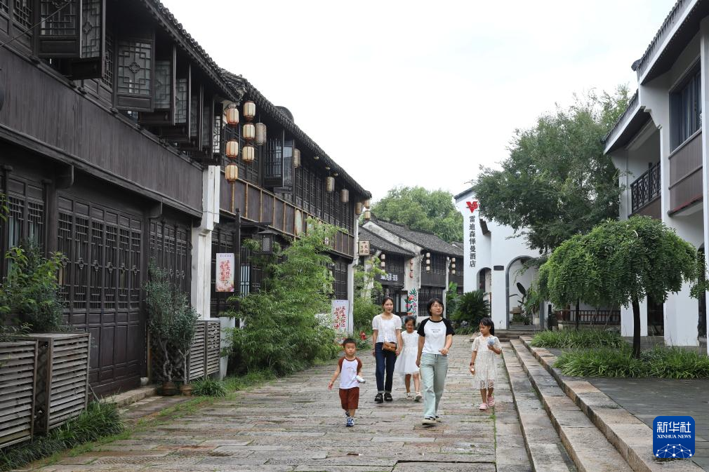 6月29日,游客在嘉兴芦席汇历史街区游玩。