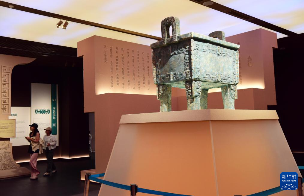 7月1日,游客在河南安阳殷墟博物馆新馆内参观。