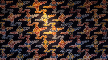 7月3日,参观者走在马可·波罗奇迹之旅展沙海征途展区内。