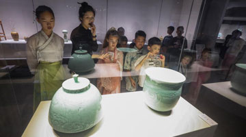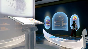7月3日,参观者走在马可·波罗奇迹之旅展厅内。