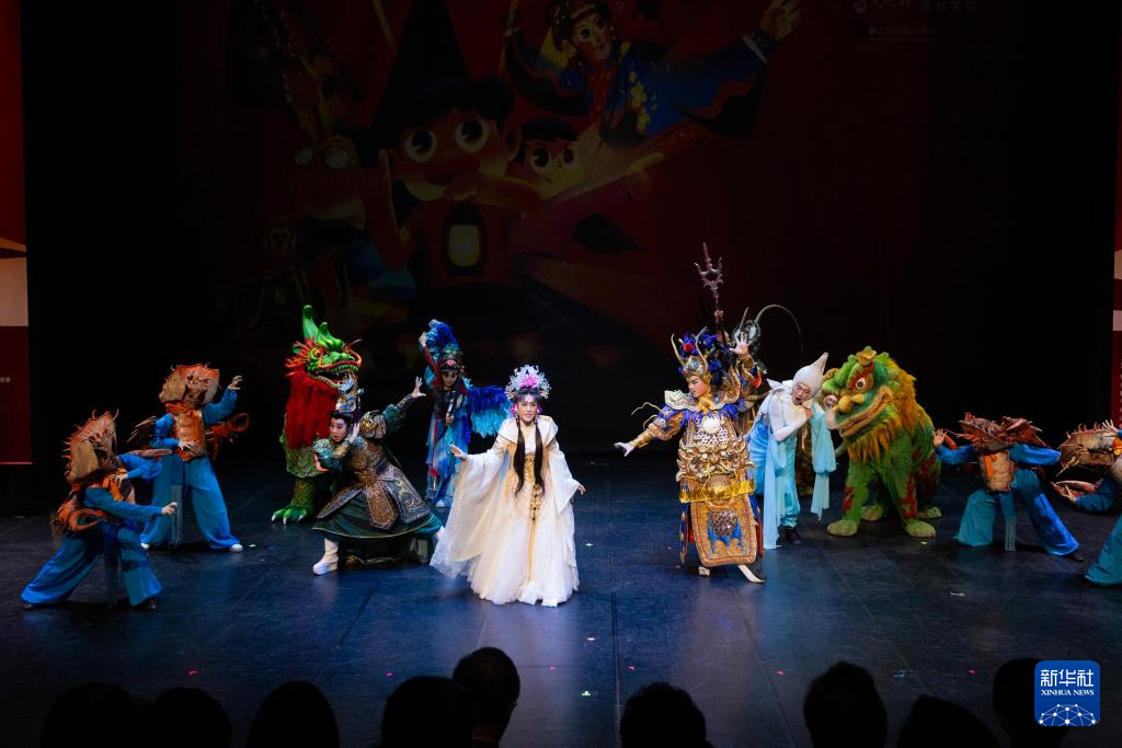 7月10日拍摄的台北木偶剧团的现场表演。新华社发