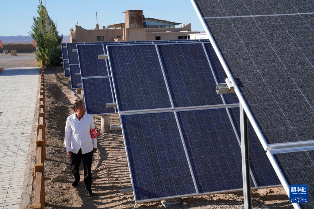 7月16日,张吉全检查屋后的太阳能电池板。
