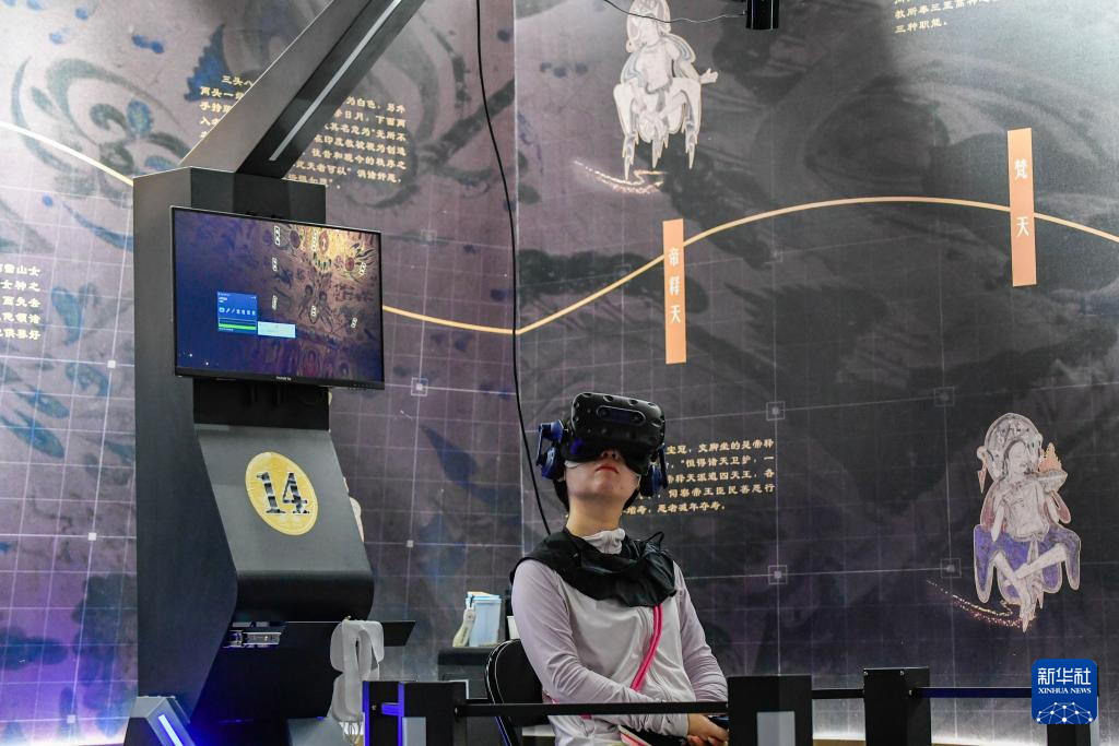 7月22日,游客借助VR设备沉浸式游览莫高窟第285窟虚拟场景。