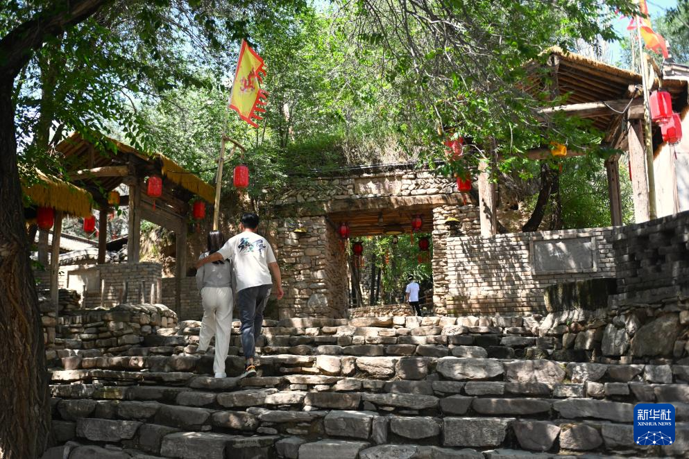 7月30日,游客经过红崖老巷子石门。