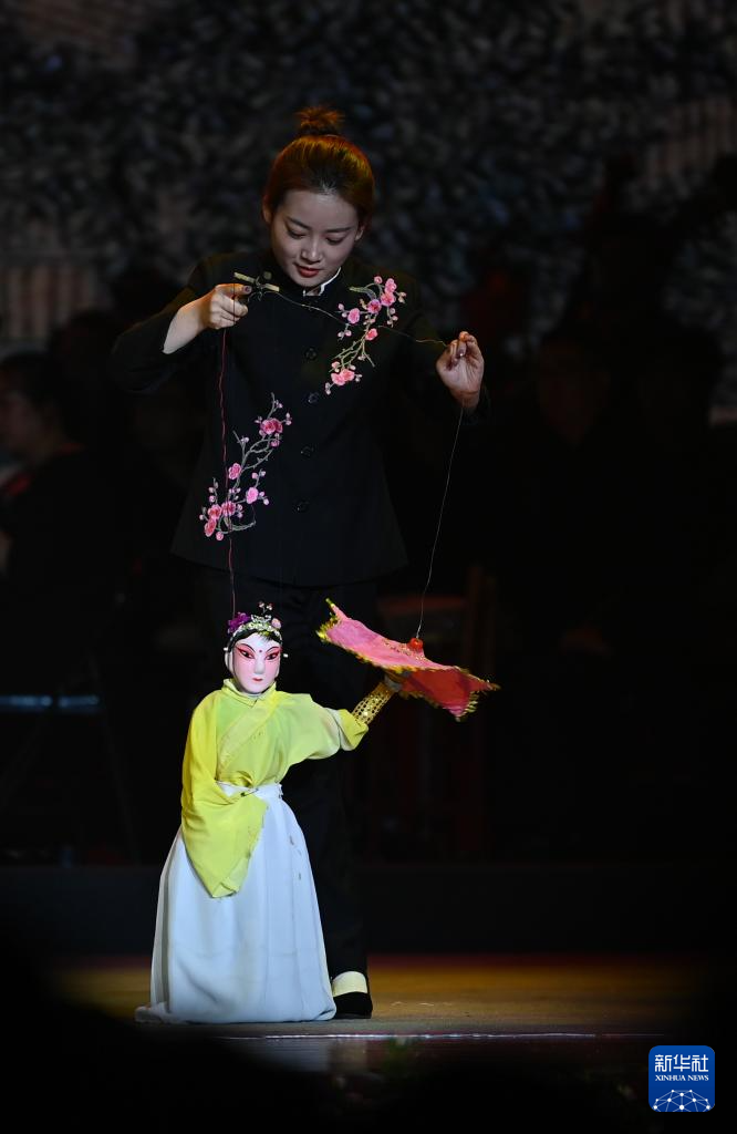 7月30日,演员在《陕西地方戏曲音乐联奏》中表演提线木偶。