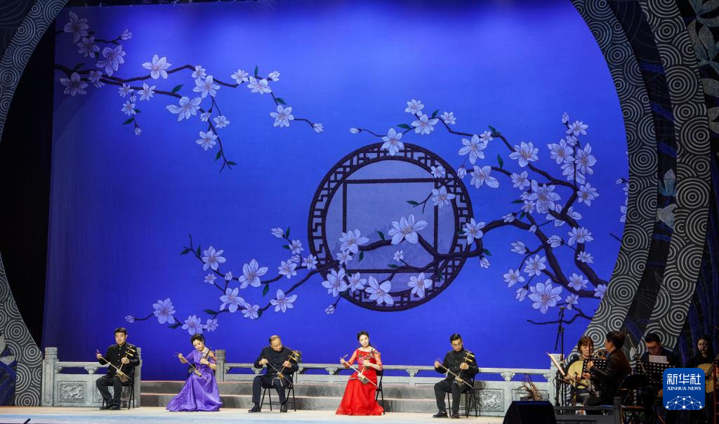 8月29日,京剧演员在吉林市人民大剧院表演京胡协奏曲《迎春》。
