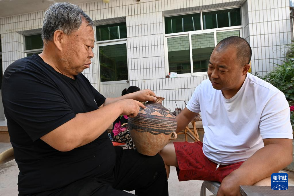 “即便用最柔顺的毛笔,色彩最佳的矿物颜料,也难以企及古人的精细和柔美。”阎建林说,这更坚定了他继续传承彩陶技艺的决心。在传承上精益求精,阎建林的名气也越来越大,成为当地陶器制作技艺非物质文化遗产传承人。