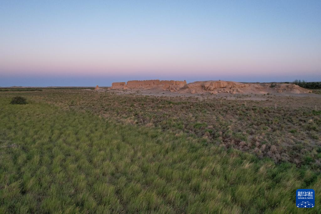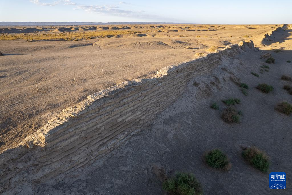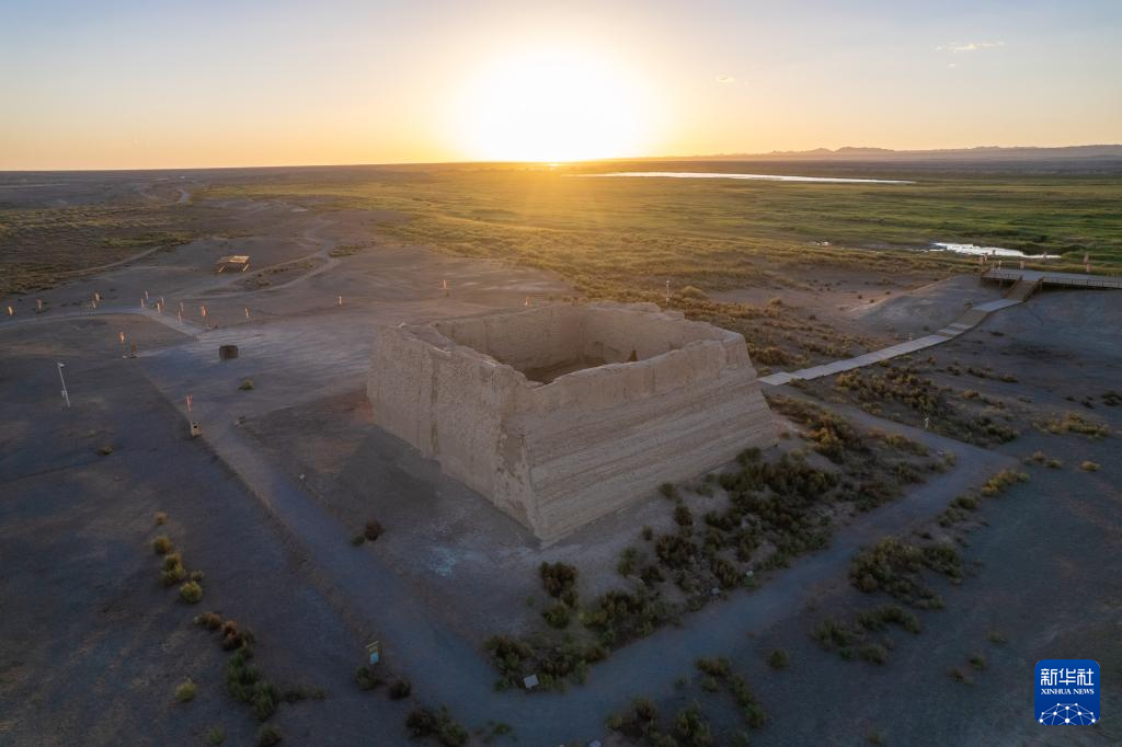 7月17日在甘肃省敦煌市玉门关遗址区拍摄的大方盘城(无人机照片)。大方盘城临疏勒河而建,故称河仓城,用于存储粮草。