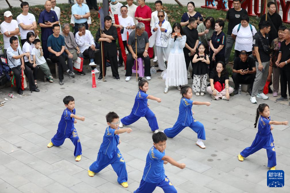 9月8日,小朋友们在南川楼文化街区表演集体六合拳。