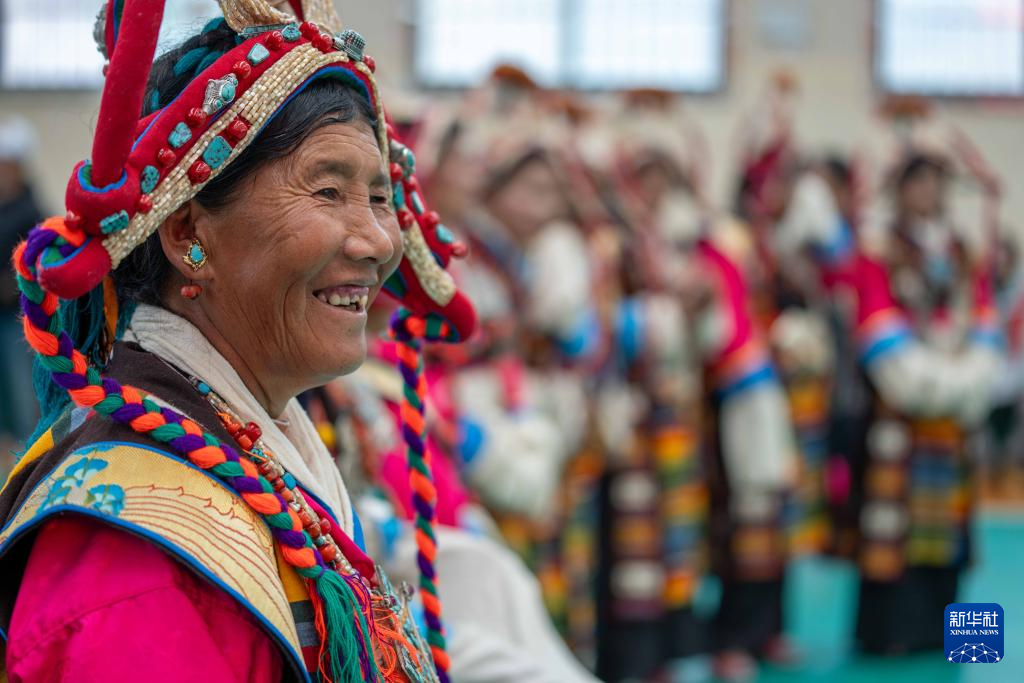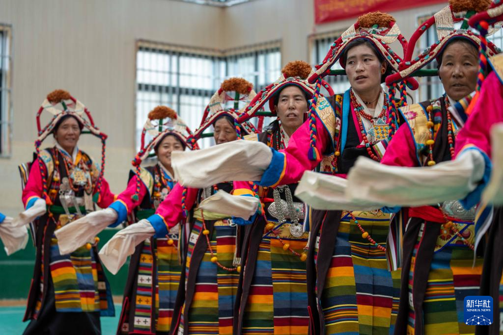 在西藏日喀则市定结县,演职人员在表演“萨尔谐钦”(9月25日摄)。