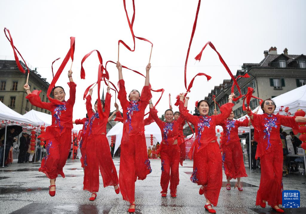 9月27日,在瑞士伯尔尼“遇见中国”文化节上,人们在表演红绸舞。
