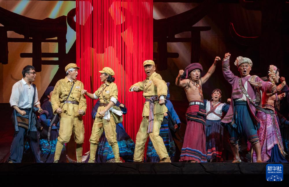 10月13日晚,演员在云南省大剧院表演话剧《澜沧水长》。