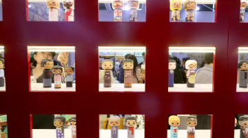 10月18日,在马来西亚吉隆坡,锡剧《追香记》的演员们在后台做表演前的准备。