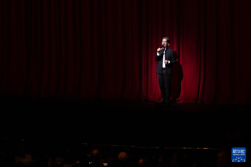 10月18日,来自美国的港芭艺术总监卫承天在芭蕾舞剧《梁山伯与祝英台》正式公演前对观众发言。新华社记者 朱炜 摄