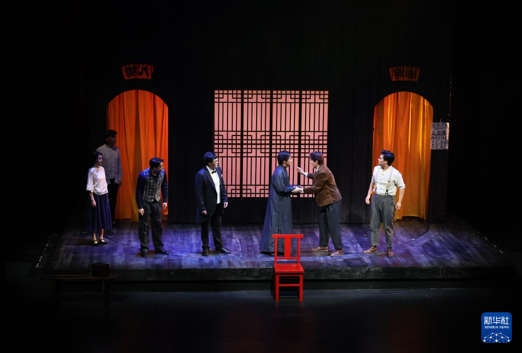 10月26日,在广西省立艺术馆,演员表演短剧《划破长夜的灯》。