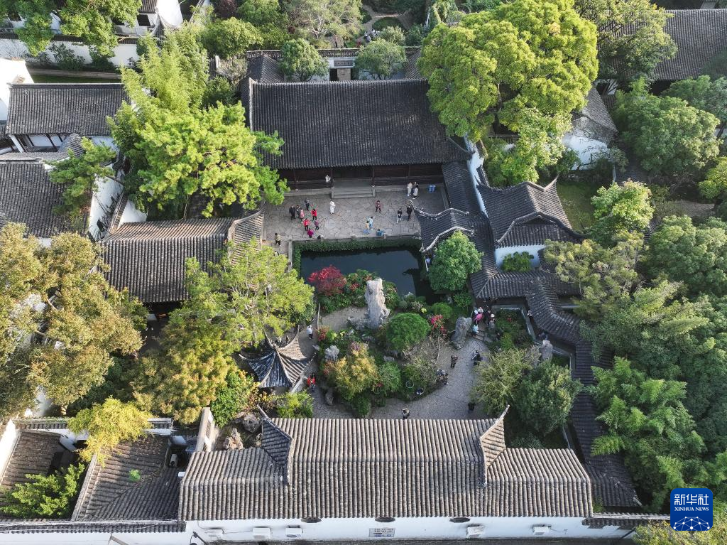 游人在留园参观游览(10月23日摄,无人机照片)。