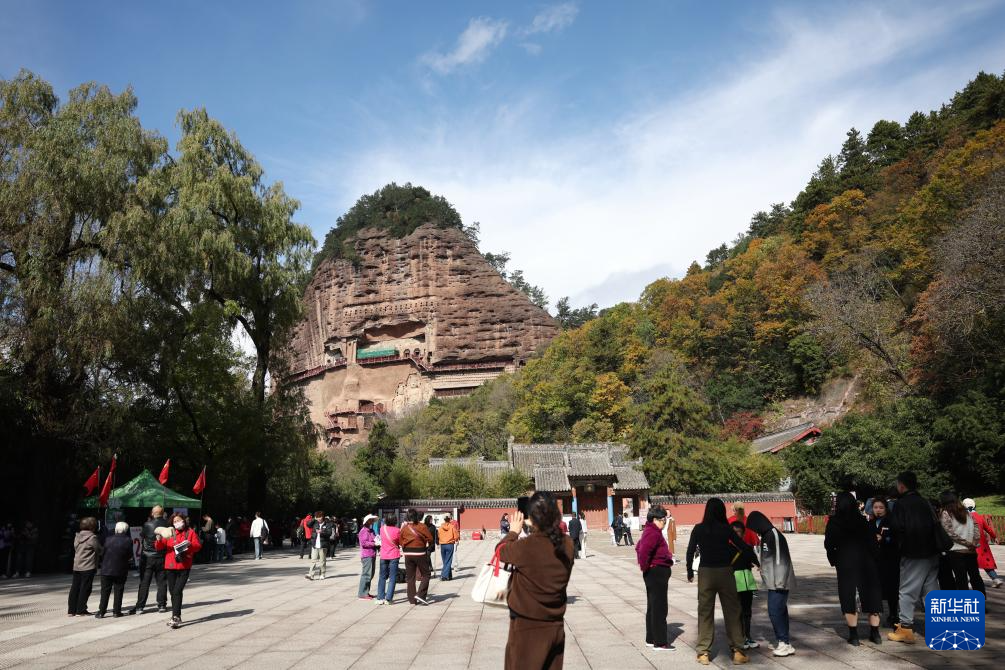 这是11月2日拍摄的麦积山石窟全景(无人机照片)。
