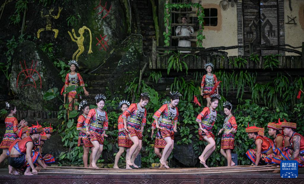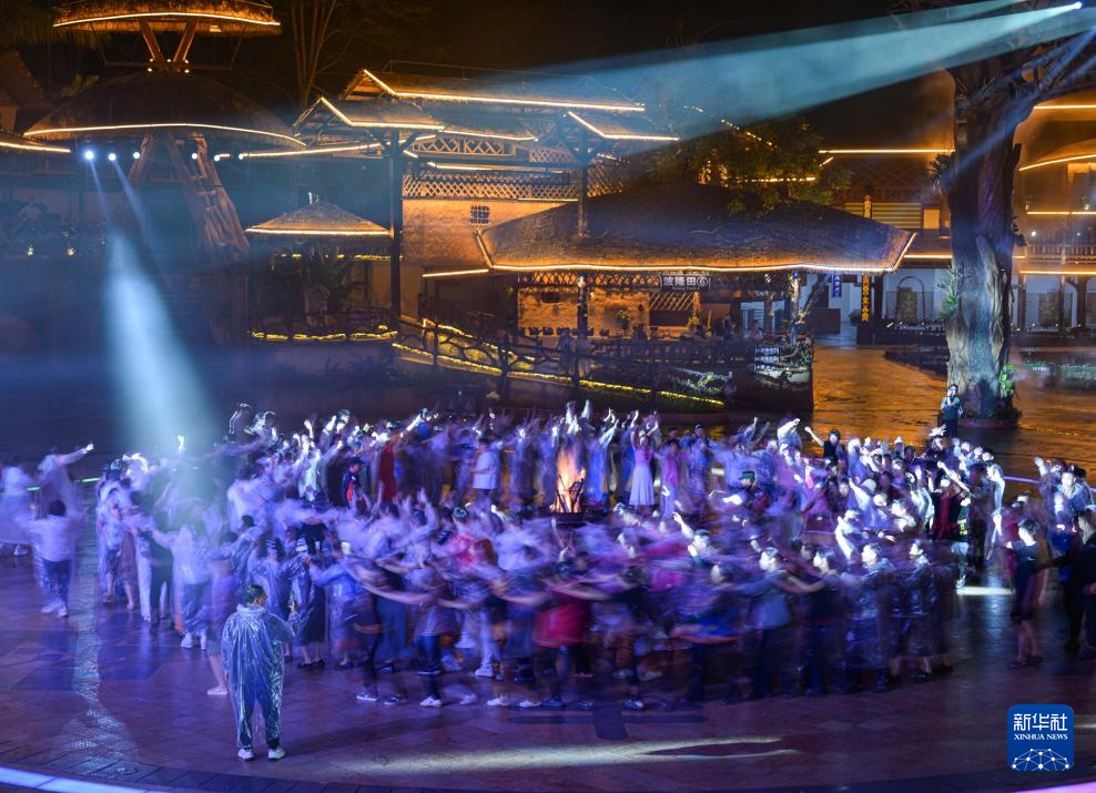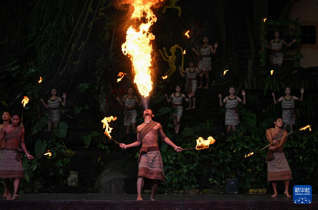 11月4日在位于海南保亭的槟榔谷文化旅游区拍摄的民族歌舞情景演出《槟榔·古韵》。