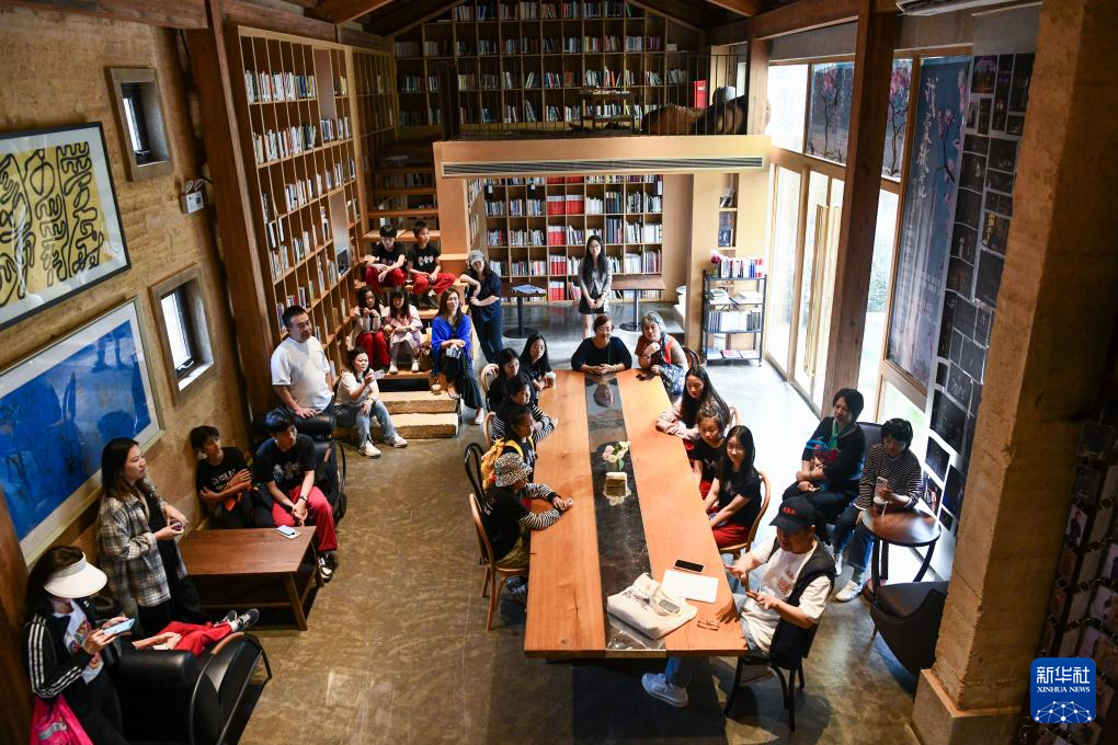 11月9日,游客在长守戏剧谷内的咖啡馆休息。