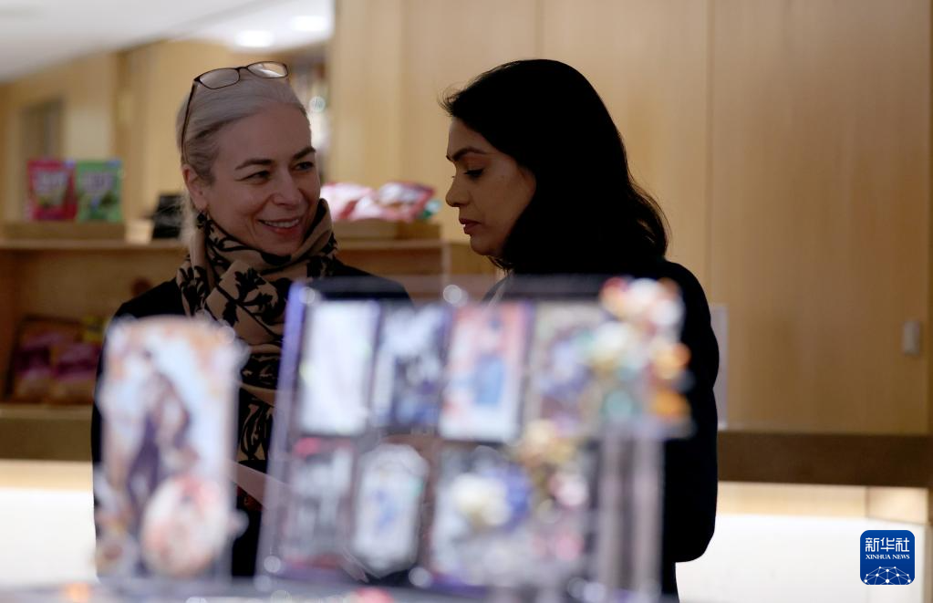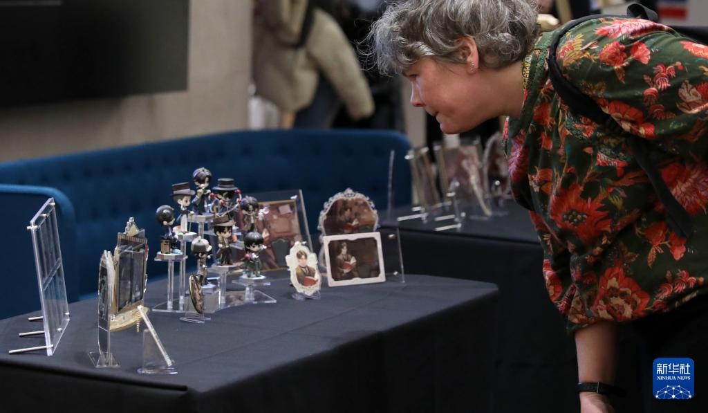11月21日,在英国伦敦大英图书馆,一名女子观看中国网络文学作品《诡秘之主》的周边产品。