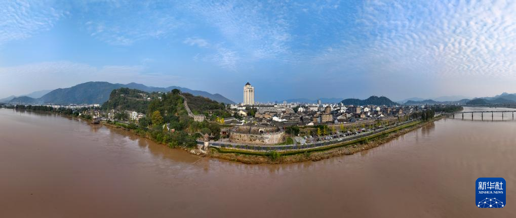 11月22日在浙江临海拍摄的黄大树参与修复的台州府城墙(无人机全景照片)。