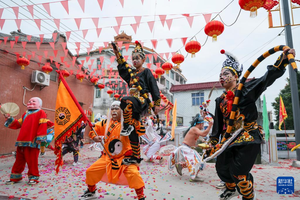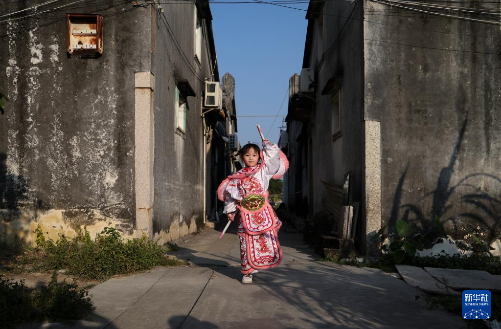 12月9日,庄恩琪穿上定制的服装在村里跳英歌。