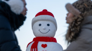 12月18日,黄山风景区管委会园林局瞭望哨防火小队队长秦志平(左一)在景区内为游客指路。