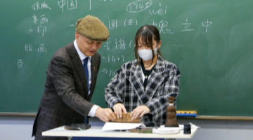 12月18日,黄山风景区文化事业管理办公室工作人员章静茹对照《黄山摩崖石刻》书籍查看摩崖石刻。