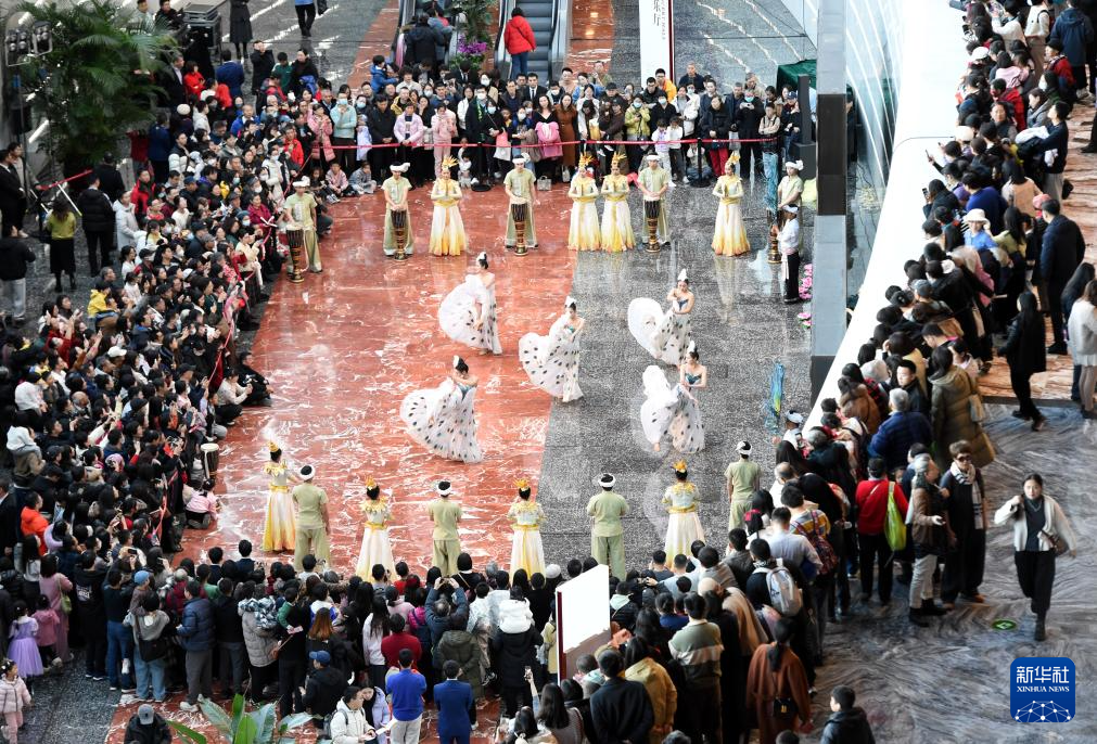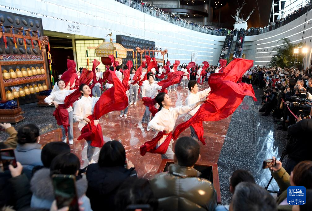 12月22日,演员在国家大剧院橄榄厅表演云南西双版纳非遗歌舞。