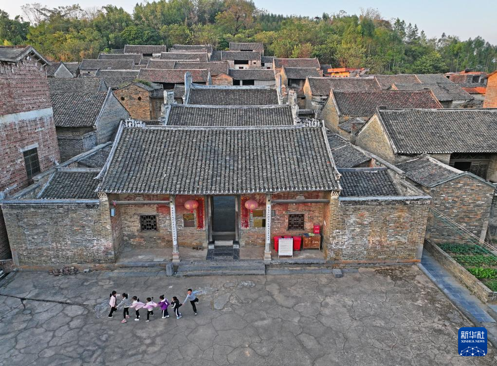 金秀县桐木镇那安村龙腾屯的孩子们在玩耍(12月18日摄,无人机照片)。