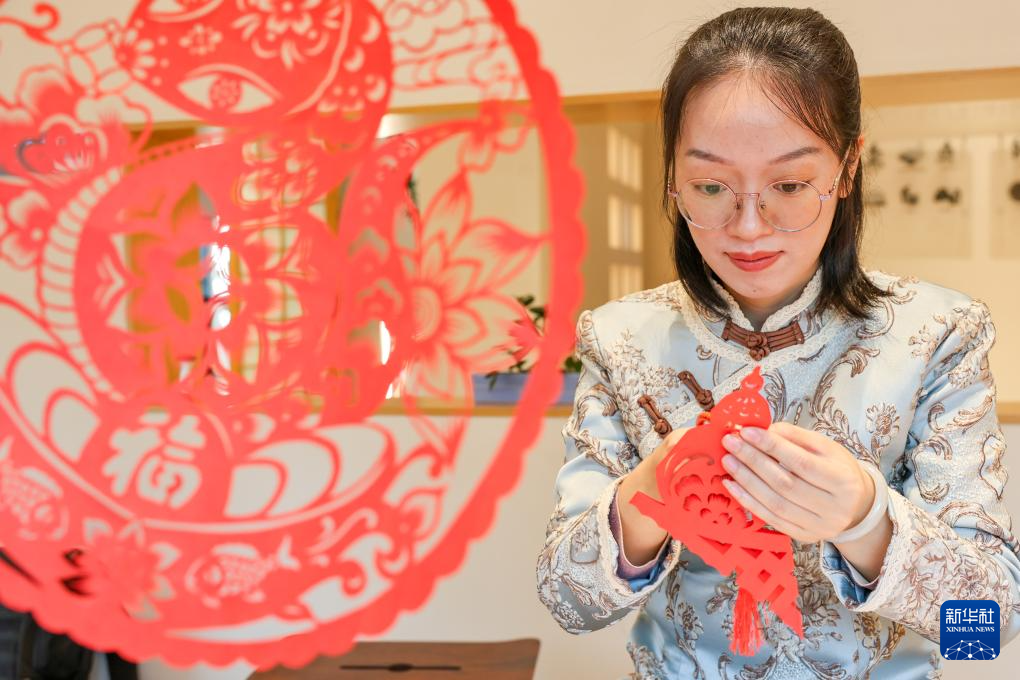 在宁德东侨开发区,剪纸艺人在创作柘荣剪纸(2024年12月4日摄)。