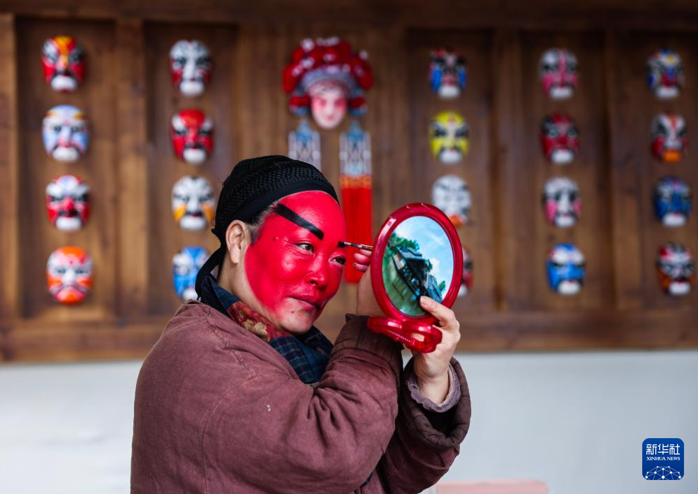 12月25日,郑店村婺剧坐唱班的演员为演出做准备。