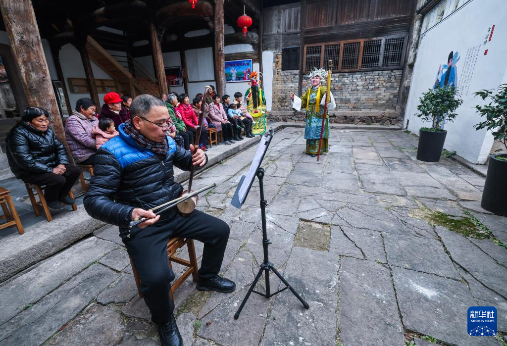 临近春节,金华市金东区澧浦镇郑店村婺剧坐唱班的演员在村文化礼堂为村民开展迎新春婺剧系列表演,吸引了不少村民前来观看。