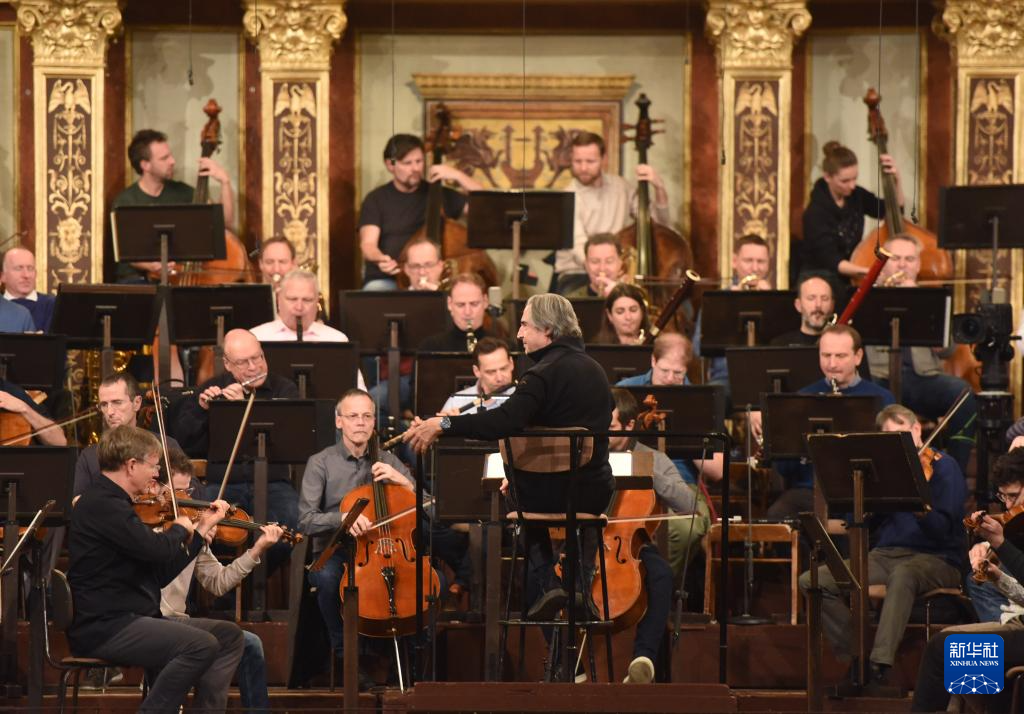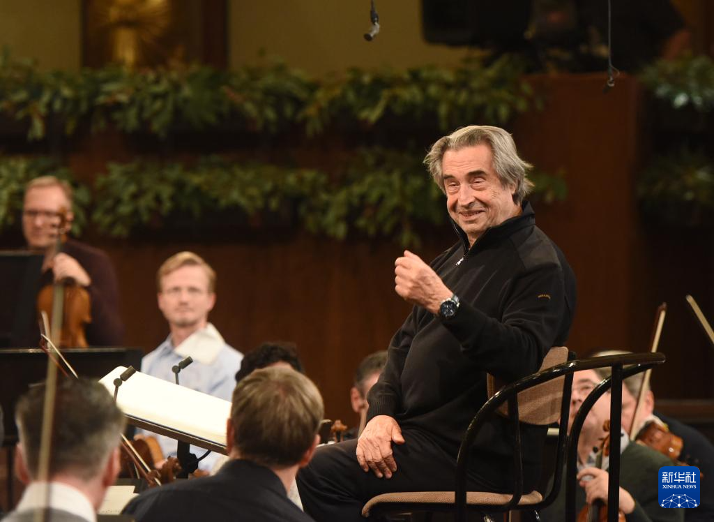 当日,2025年维也纳新年音乐会新闻发布会在奥地利首都维也纳举行。发布会后,指挥家穆蒂和维也纳爱乐乐团在金色大厅为2025年维也纳新年音乐会进行彩排。