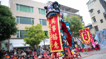 1月7日,人们在阆中古城观看舞龙舞狮。