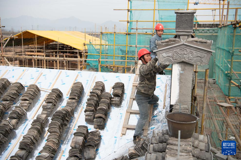 1月8日拍摄的安徽省黄山市休宁县一处传统徽派古民居复建工地现场。