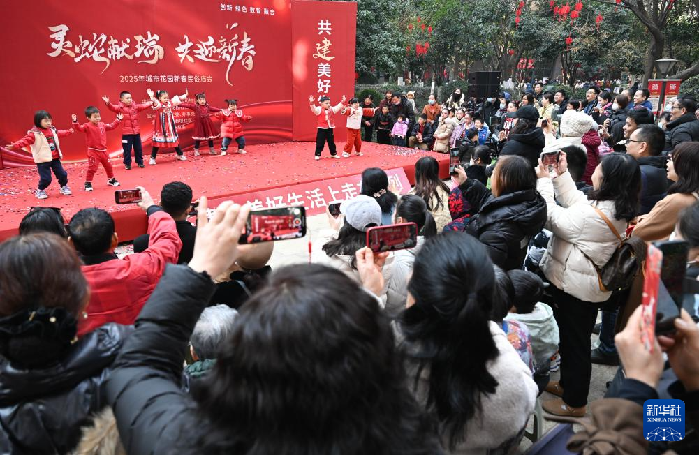 1月19日,一场社区庙会在中国能建城市发展公司武汉城市花园小区举行,500多名居民在家门口参与传统游艺、写春联、赶大集等活动,共同体验传统春节文化,感受春节喜庆气氛。